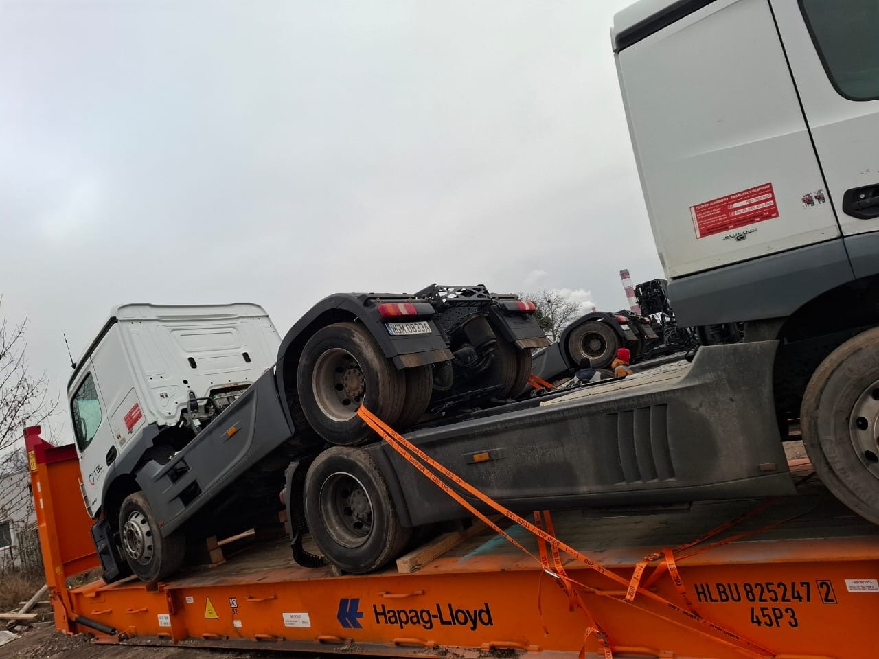 Zrealizowaliśmy projekt formowania dwóch kontenerów typu Flat Rack, przeznaczonych do transportu ponadgabarytowych pojazdów. Na każdy z kontenerów załadowaliśmy po dwie ciężarówki, odpowiednio zabezpieczając je zgodnie z wymogami międzynarodowego transportu morskiego.